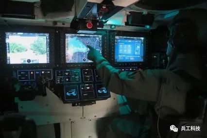 图注: “猎人”步兵战车车内配备的多台大型多功能显示器,确实是此前同类装备中前所未有的