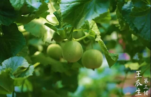 【立夏三候:王瓜生】王瓜是一种药用爬藤植物,在此时快速生长,六七月便会结出红色的果实。