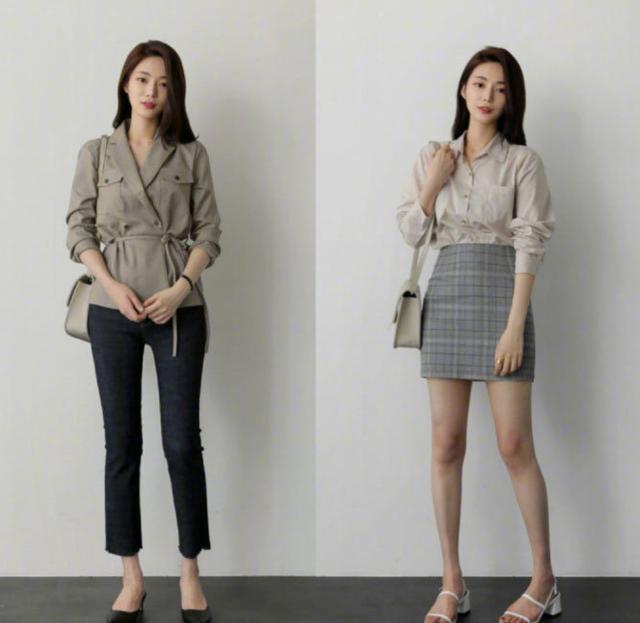 除了黑色跟白色这两种百搭色以外,其实灰色也是一种非常百搭的颜色,并且很多灰色的衣服,都很适合上班时穿。其实这种颜色本身就是一种很适合上班时穿的颜色,而这两种款式的衣服搭配在一起,效果同样特别好。
