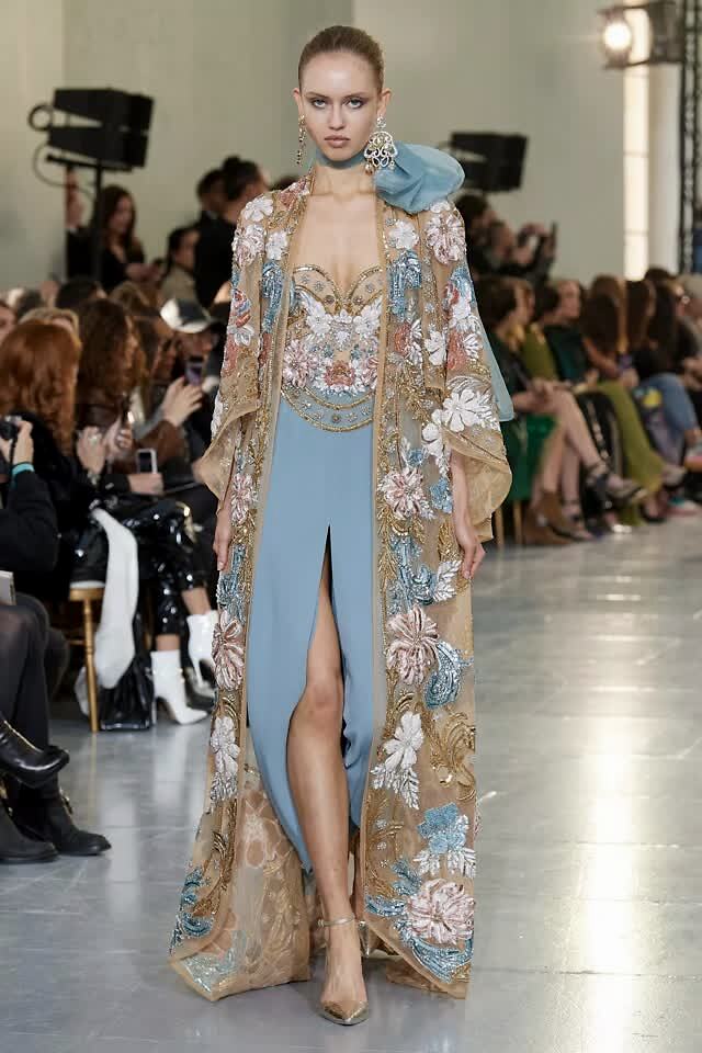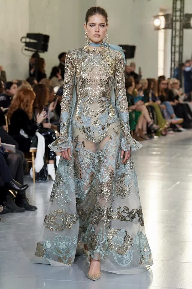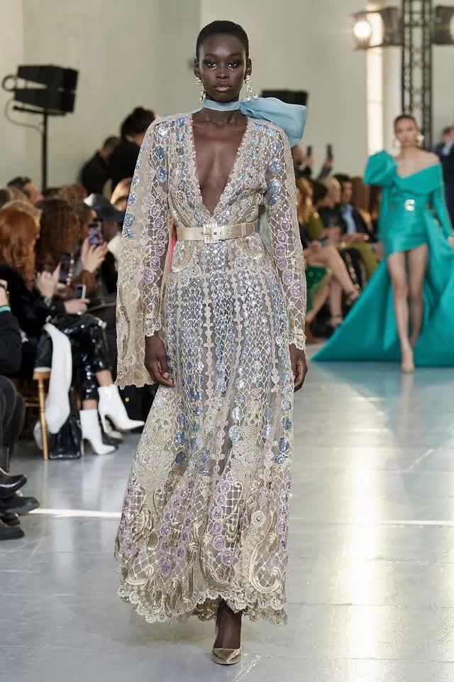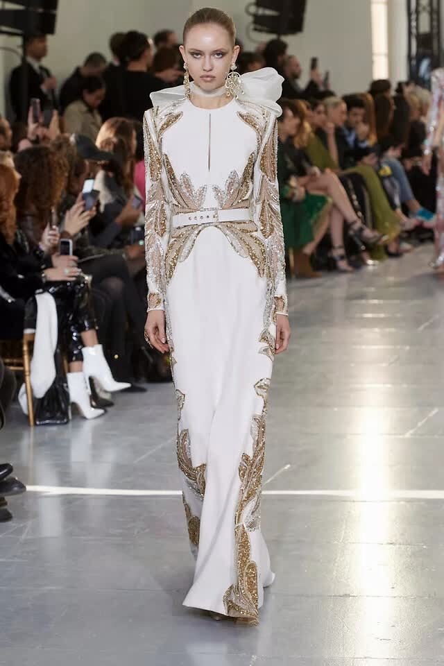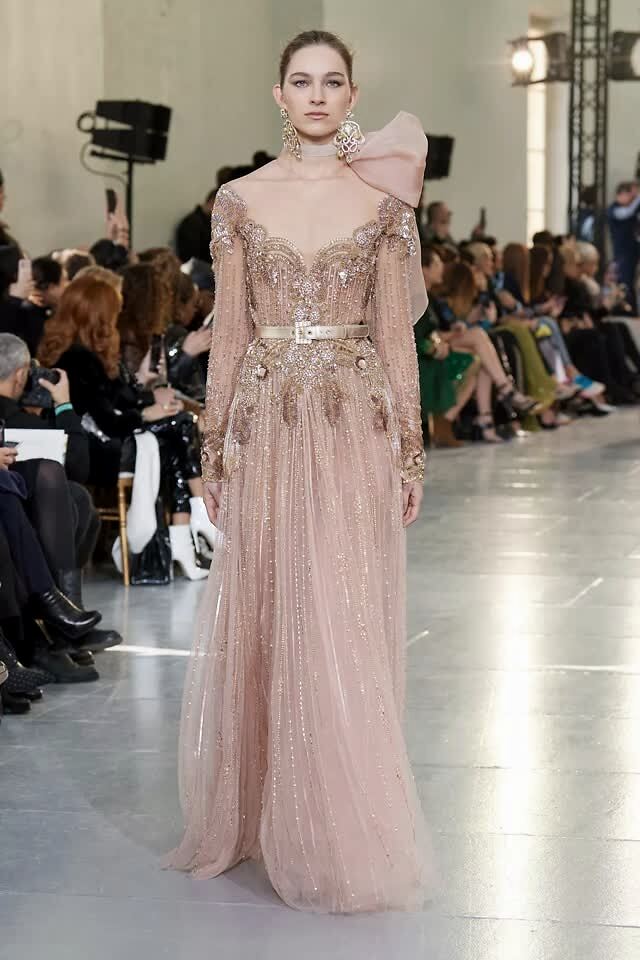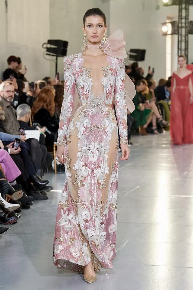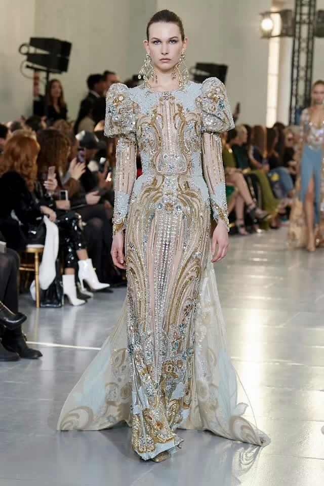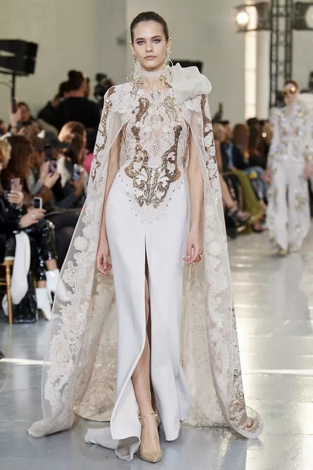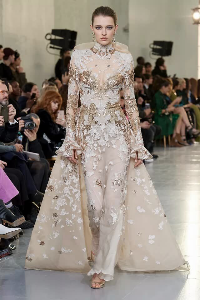 缤纷华丽的晚装礼裙永远是 Elie Saab 的拿手好戏,这季的仙裙装饰细节格外闪耀,繁复的刺绣描绘在绸缎上,极尽精致奢华之感。