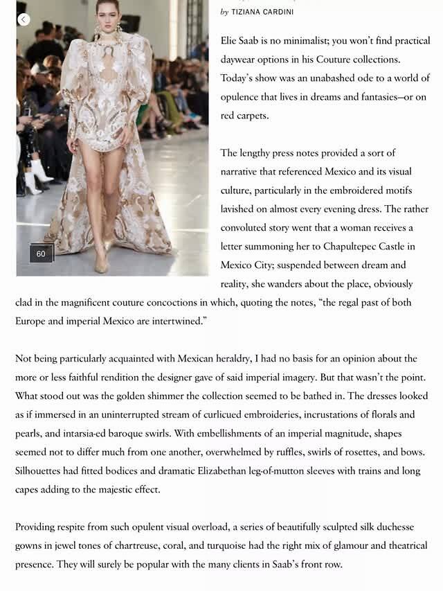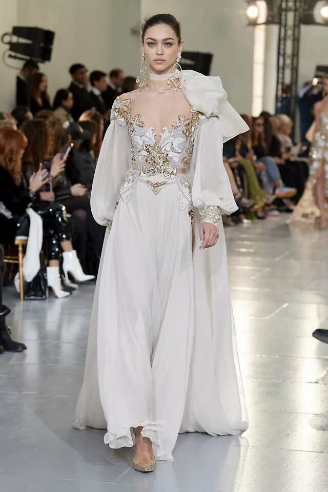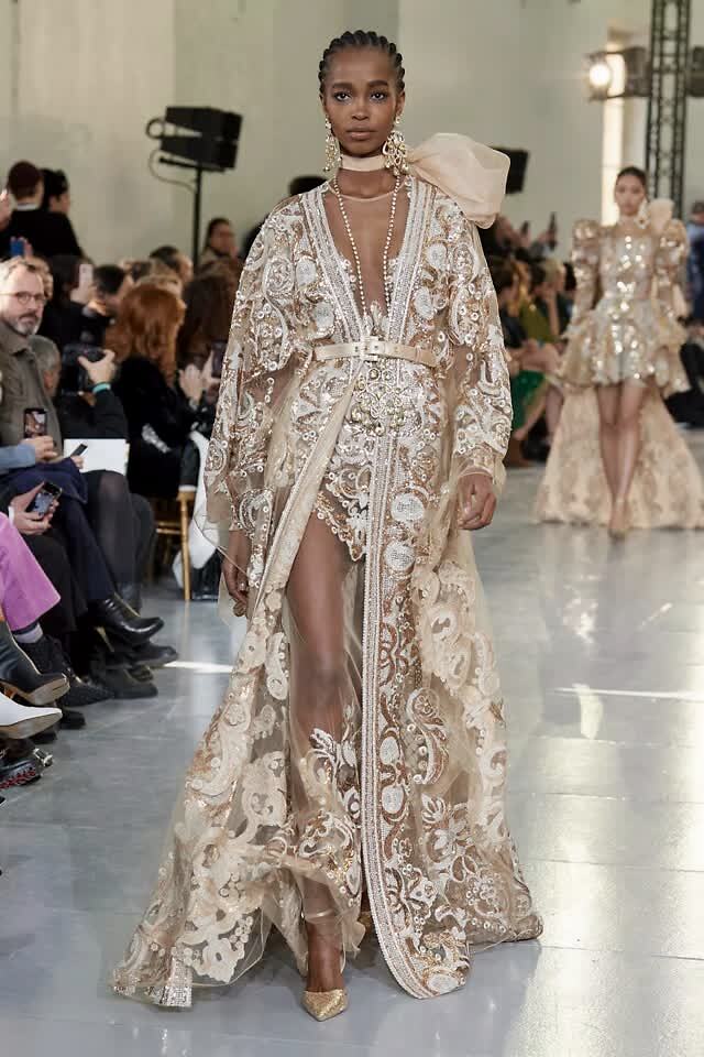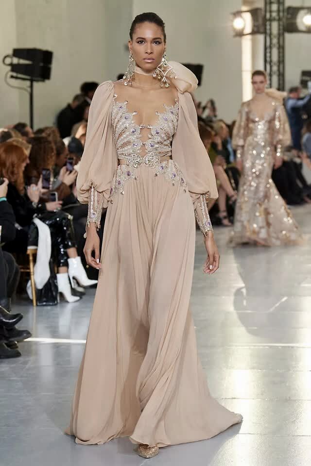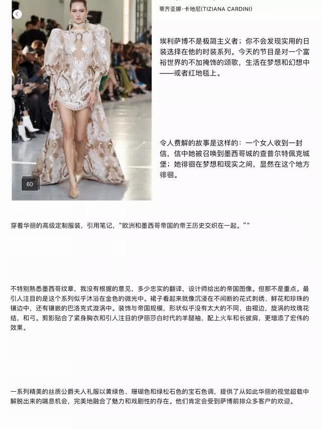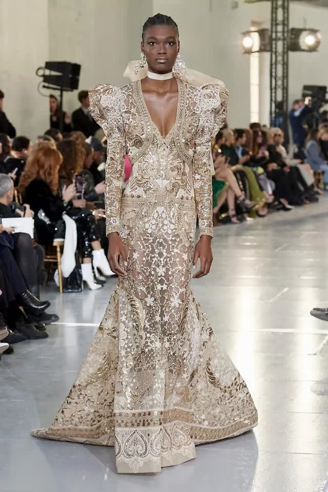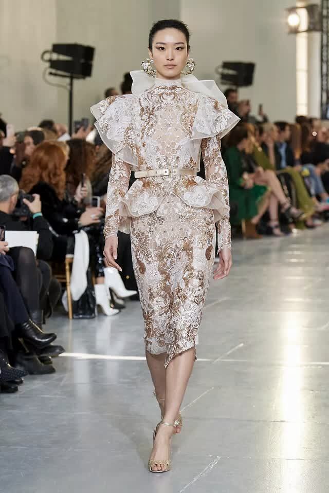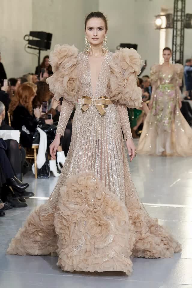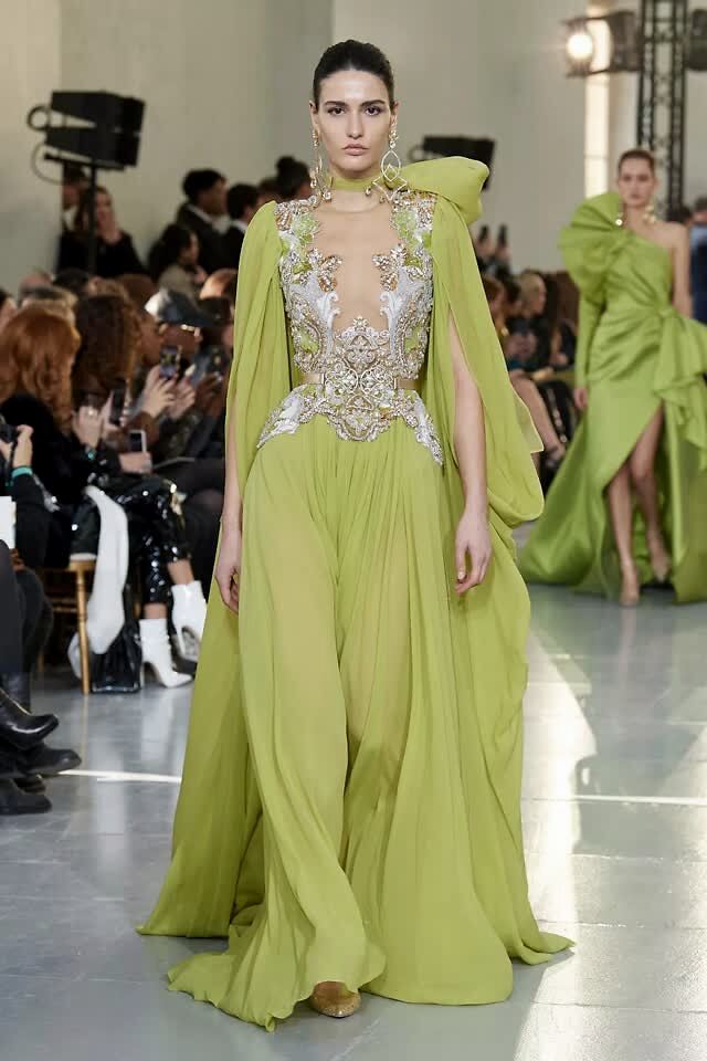 缤纷华丽的晚装礼裙永远是 Elie Saab 的拿手好戏,这季的仙裙装饰细节格外闪耀,繁复的刺绣描绘在绸缎上,极尽精致奢华之感。
