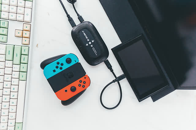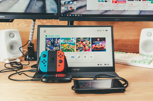 电源供电,一端接上CF015C,一端接上Switch主机,就可以开始便携屏幕Switch之旅了。