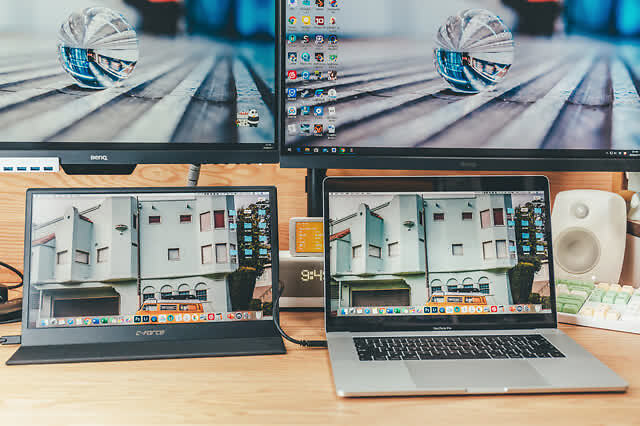 因为是Type-c接口,可以直连Macbook Pro,两块屏幕色彩, CF015C饱和度稍微低一些,但是已经可以优秀的作为副屏输出了。