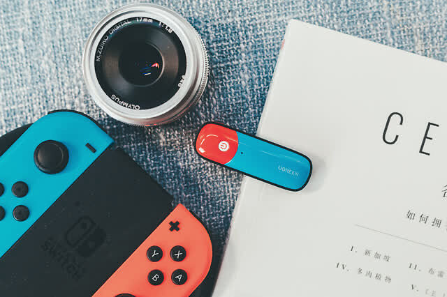 市面上常见的蓝牙发射器有拖尾巴款和3.5mm转接式,拖尾巴就无法实现边玩边充,我这里用的是后者。