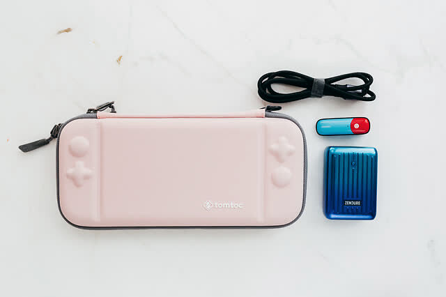 不过近期有购入第二台Switch lite的打算,因为这台基本被媳妇霸占了,之前她单独回娘家,直接带走了我上面一套组合,轻薄包+支持9V 规格的PD快充移动电源+绿联蓝牙适配器+Type-C快充线。