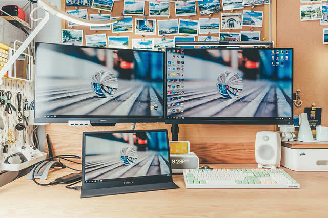 红蜘蛛方面没有详细屏幕素质测试,毕竟主要用途是作为Switch的外置屏幕,这里我就简单对比下我的两台显示器,左边为明基的PD2500Q,右边为明基的SW270C,是专业的10bit面板摄影修图显示器,色域数值也是100%ARGB。