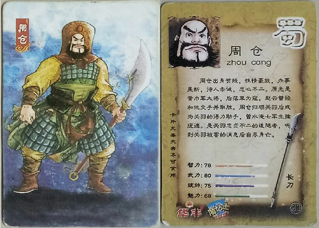周仓,身材高大、黑面虬髯的关西大汉,本是黄巾军出身,关羽千里寻兄之时请求跟随,自此对关羽忠心不二,在听说关羽兵败被杀后,周仓也自刎而死。