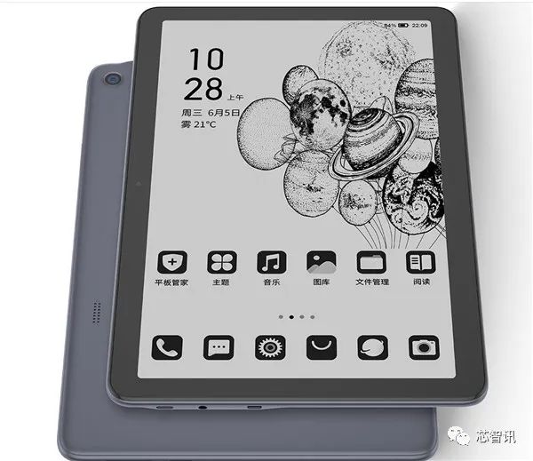 搭载虎贲T610,配置零蓝光护眼RLCD屏幕(反射式液晶屏),取消彩色滤光片和背光,屏幕本身不发光,依靠自然光反射显示,而且光线不直接进入人眼,同时反射后的光过滤掉了大量的高能量、穿透性强的光谱,还配置了护眼距离提醒、5灰阶设计,选配外挂护眼灯。