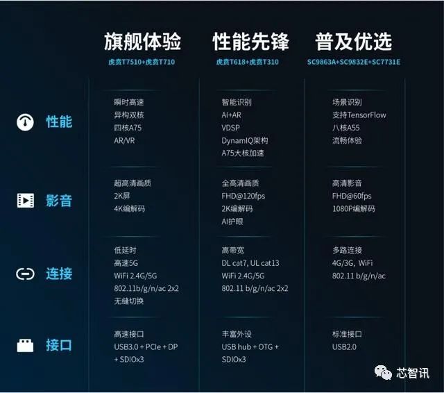 性能先锋系列包括虎贲T618和虎贲T310,提供了更强的CPU性能,并支持千兆比特连接速度,性能强大的GPU以及专门为平板消费品类优化的2K编解码,芯片级护眼,集成的ISP和VDSP等处理单元,为各类丰富的AI应用提供了高效能、低功耗的技术基础。