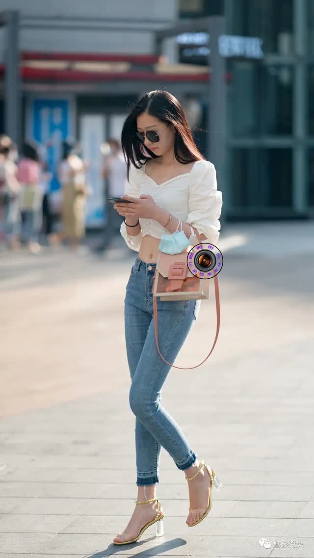 水晶高跟凉鞋不仅仅是好看,而且还很容易搭配,它的百搭指数同样是一百分。这个美女的水晶高跟凉鞋款式很新颖,鞋底和脚踝位置的鞋带采用了嫩黄色,这样更显脚白。美女用它搭配了一条蓝色紧身牛仔裤,凸显美腿颀长的效果丝毫不输尖头细跟鞋。美女上身穿一件白色方领高腰上衣,这身搭配小蛮腰、大长腿充分体现了美女的好身材。