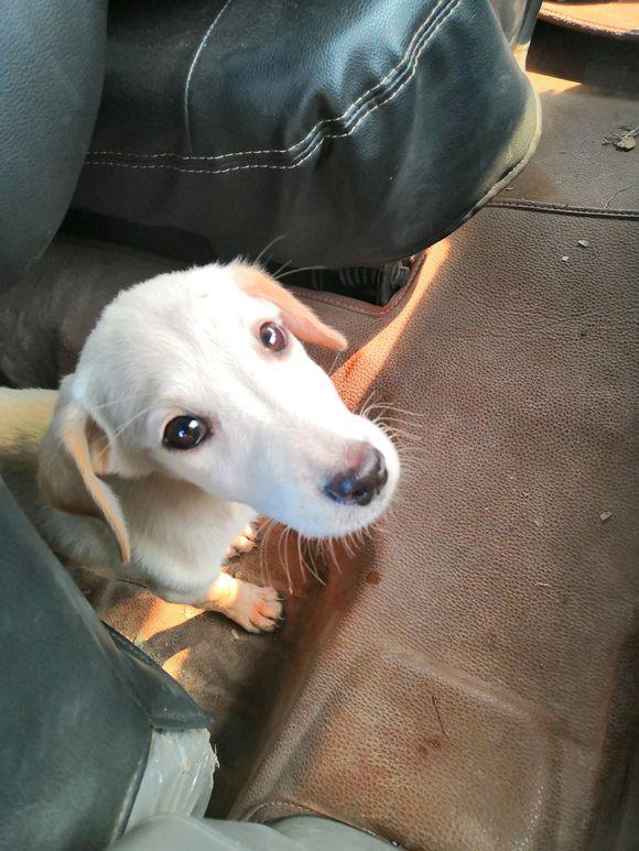 第二天受到快递电话之后,看到狗狗,很瘦小,样子也比较呆滞,比较怕生,这样看上去,挺不像拉布拉多的。