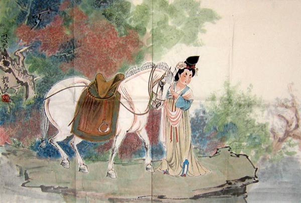 作为一个大诗人,他首先是一个男人,对漂亮的女人动心也很正常,又何况是能歌善舞、诗文俱佳的贵妃呢?他赞美杨贵妃的诗句很含蓄:“云想衣裳花想容,春风弗槛露华浓。若非群玉山头见,会向瑶台月下逢。”在这里以彩云、鲜花、带露的牡丹等来形容贵妃的花容月貌、美若天仙之外,李白的确有借诗传情之嫌,在向贵妃传达他爱她的信息。