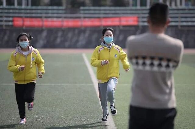 「老师在带学生进行体育活动时,应事先做好检查。看到学生戴N95进行体测,我自己戴N95爬个楼梯都呼吸不畅,跑1000米就更不用说了!」