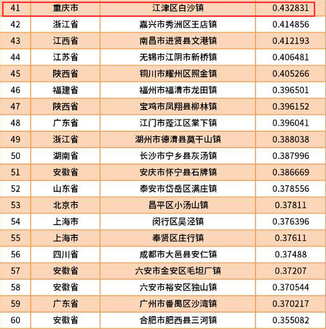 近日,2020中国特色小城镇品牌传播百强榜发布会在人民日报社举办。国家城市品牌评价项目组、《中国城市报》对全国403个特色小城镇进行标准化分析,发布前100名小城镇名单。其中,江津白沙名列第41位,是重庆唯一上榜的特色小镇。