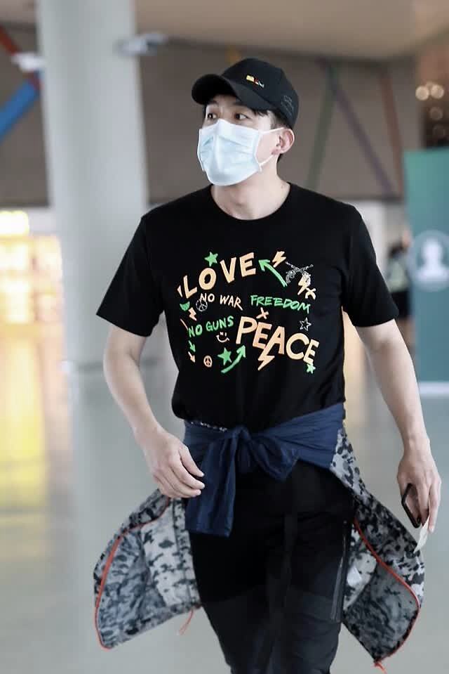 虽然穿着低调简单但是仍然暴露了他健硕的好身材,孙艺洲半袖包裹下的胸肌实在是太瞩目了。