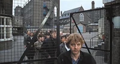 青年嬉皮士驱车横穿街道的同时,一群工人正有序地从工厂大门走出。他们面带倦容,刚结束一整晚的工作,现在只想回家洗个热水澡,若能补个觉那就更好了。在这群工人中间,我们提前看到了电影男主角托马斯,他衣着素朴、面容憔悴,手里拿着一个变形的牛皮纸袋。他为什么会出现在这里,我们暂时还无法知道。