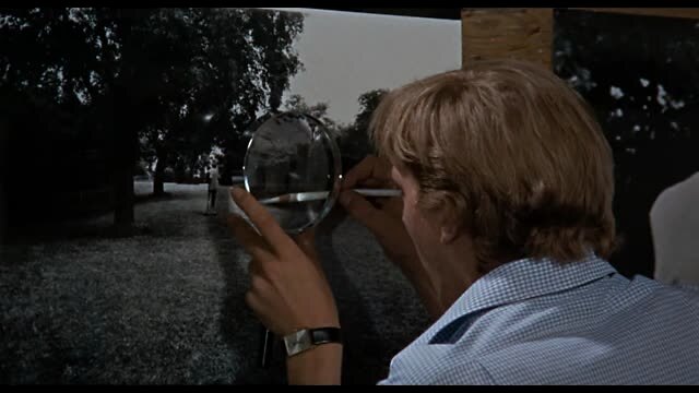 随后,托马斯左手挂着相机开始在公园晃荡,无意中发现一对中年男女在草地上亲热。因为职业摄影师的身份使然,托马斯立即拍下了这个场景。完事后,他转身离开。不想,拍摄行为被女人发现。她紧随托马斯,想要索回胶片,却被托马斯严厉拒绝。甚至在女人索要胶片的过程中,托马斯也不忘将这个画面拍下。