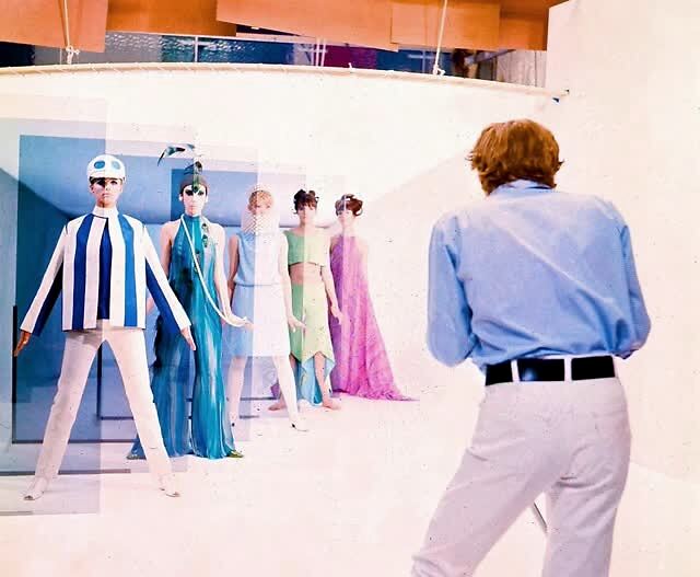 安东尼奥尼以此说明摄影机的霸权功能:托马斯自认为可以通过摄影定格下真实世界来掌控现实。托马斯左手拿摄影机,坐在女模特身上的经典镜头(这张剧照也被用作了封面),说明了摄影行使着与性行为相似的功能:占有。