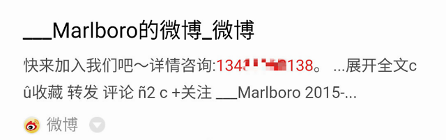 我们点开这位“____Marlboro”的页面,发现了另一篇广告。其中有第二个手机号134xxxxx138,署名为吴老师。