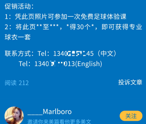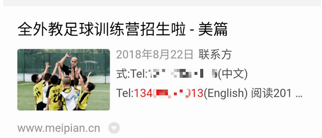 现在我们搜索这个号码1340xxxx013,找到一个外教足球训练营的广告。
