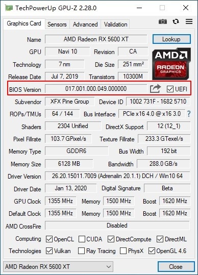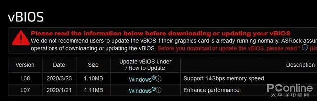 很多显卡厂商来不及为早批的5600XT更新到“14Gbps版”BIOS,最近才发布了新BIOS的文件