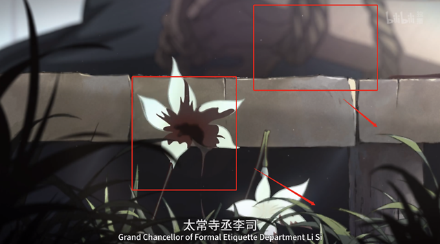 在点开《大理寺日志》就能被干脆利落叙事节奏所吸引,一部作品开头的几个镜头就能展示作品的整体水平,举个例子,首播话以一个浅景深开篇,镜头聚焦于花朵和折断的花骨朵,在没反应过来时,喷射的血迹就溅到花朵之上,后景的人与花朵向同一方向倾斜。