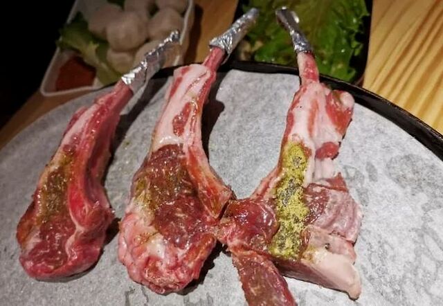 在留香烤肉,除了吃烤肉必须尝试的五花肉之外,特别推荐这里的小羊排,来自内蒙古的优质小羊排,颇有分量,重点是只要18元/根!多点几根也不用心疼钱包。而且肉质鲜嫩,店家只简单施以孜然粉做调味,可见对羊排品质很有信心的!