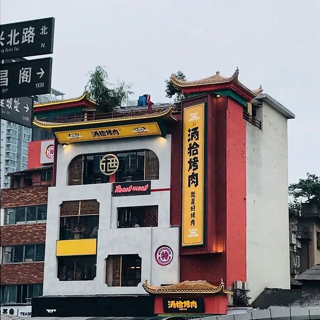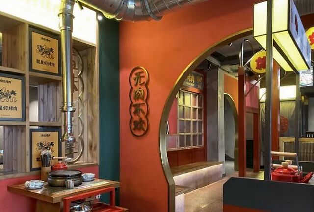 另外,各家湘派烤肉店具有的“复古国潮”风环境