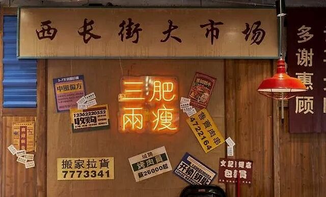 一踏进三肥两瘦的店,就能感受到店内很强的怀旧复古装修风,有种回到八九十年代大街小巷的感觉。墙上贴着各种小广告、专门定制的老款校服以及游戏机、围棋盘,都能看出老板用心在复刻经典。