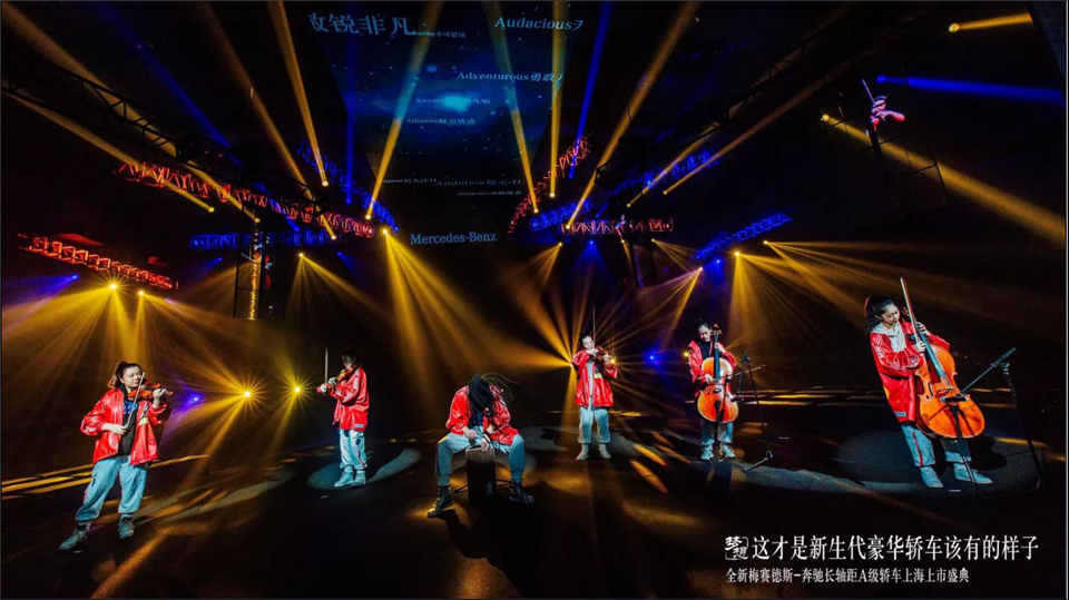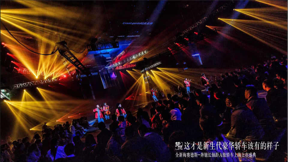 终于到了新品发布的时候,灯光开始深沉起来,展示新品的科技感和奢华感,舞台也由此骚动、