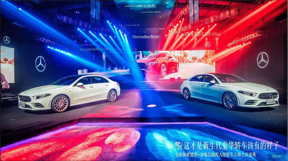 As for the Mercedes Benz new car conference, smart, as a popular car brand of the younger generation, of course, the style of the conference hall should be more close to the younger generation. The strong atmosphere can not only fit the luxury and style of the new product, but also the expressive flowing temperament, with both sensibility and elegance, presenting a classic, stable and ultra modern sense.