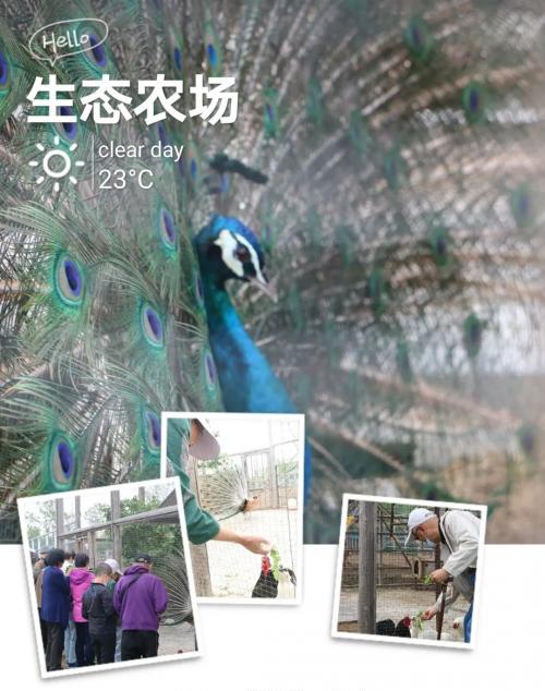 远远的,就看到了小鹿、矮马和骆驼在萌宠乐园悠闲的晒着太阳,走上前去,就看到了兔子和乌鸡在笼中漫步觅食,长者们纷纷拿出早已准备好蔬菜,细心的喂给它们。一旁的美丽的孔雀在长者们的欢声笑语中,闻声开屏,满眼的华美,犹如一块圆形的彩缎展现在大家眼前。