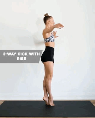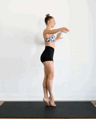 吸气准备,呼气双手叉腰踮脚尖