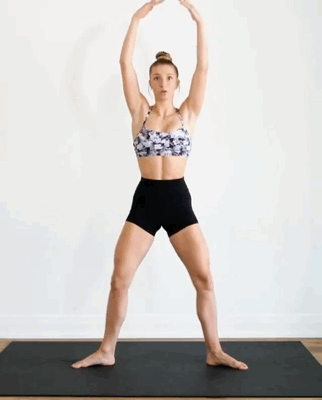 脚尖向外,双手向上指尖相对