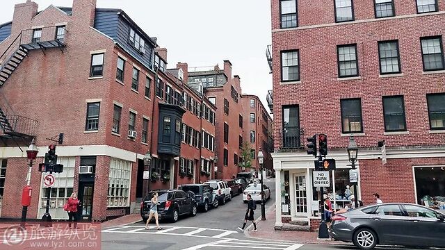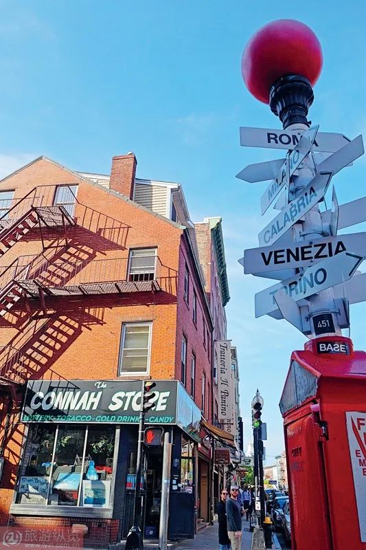 红砖建筑也散见于波士顿“革命老区”沿线的古老建筑,不知这是否是“自由之路”采用红砖铺设的缘由呢?“自由之路”延伸至查尔斯河畔的小意大利区,这里红砖老屋最为集中,加上沿街一家挨着一家的修建得漂亮的美食餐馆,这个老区的生活气息令人流连忘返。