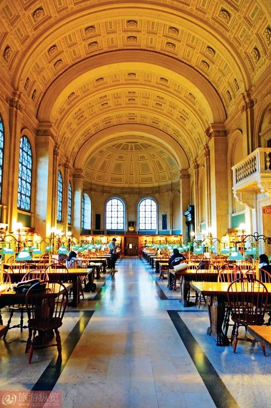 波士顿图书馆最令人喜爱的,如同纽约公共图书馆一样,也是超级漂亮的大阅览室,特别是每个座位上的翠绿色台灯,给庄严的图书馆增添了典雅、复古的动人色彩,成为拍照的最好地方,当然,我们最好低调一些,不要用快门声打扰正在专心阅读的人们哦。