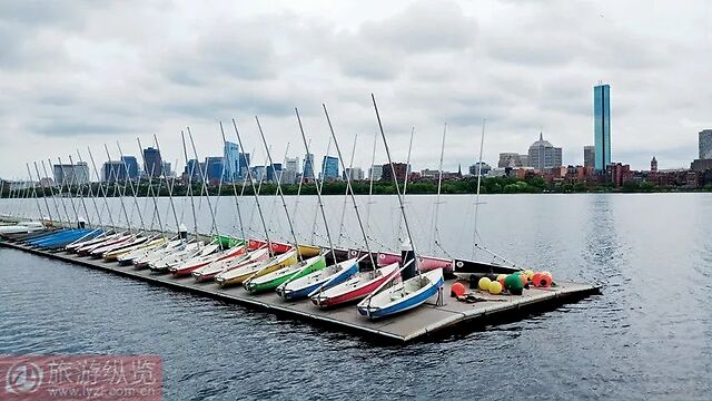 因为季节尚未进入盛夏,查尔斯河里还没见到大学的学生们为了划艇比赛在刻苦地练习,草坪上也没有大方穿着比基尼、边听iPod边晒日光浴的女孩们,卖冰淇淋的小摊贩不见踪影,一切都还很安静,五颜六色的赛艇静静停泊在河里,它们还没有进入赛季前的忙碌期呢。但就是这样闲适地沿着查尔斯河散散步,也很好了,我总觉得,有大河的城市都是幸运的,好像额外增添了一种“气定神闲”的气质,村上春树就这样形容波士顿,看到这座城市的我,想起这样的评价,顿觉确实很贴切。