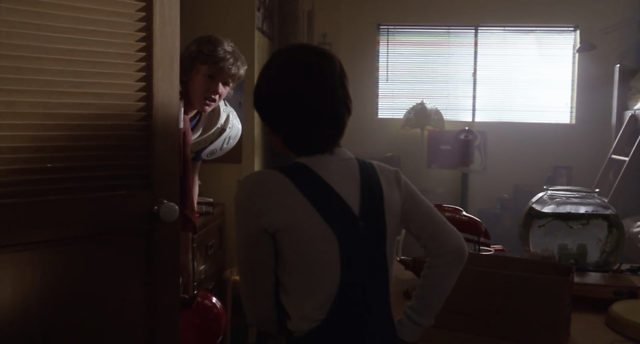 在这场戏中,导演对远景镜头的运用完美地展现了景别所要表现的东西。在观影的过程中,我们可以看清楚事物彼此之间的联系:卧室、埃利奥特、埃利奥特移动到衣橱、迈克尔、外星人、迈克尔受到惊吓,以及书纷纷落地。