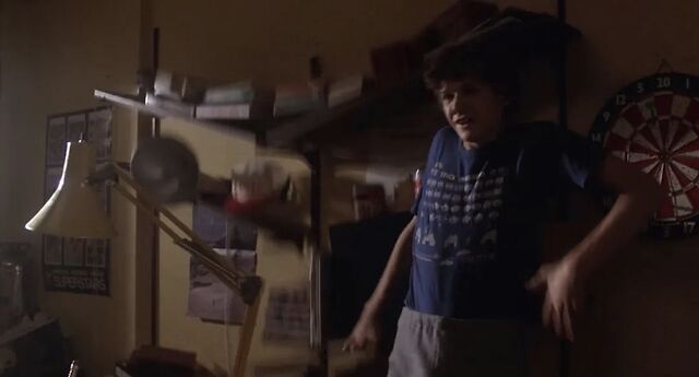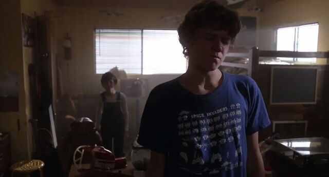 接下来,埃利奥特走向左边的衣橱,并把外星人带到迈克尔的身后。当迈克尔转过身来,看到这个奇怪的小东西时,被吓了一大跳。他猛地朝后退,结果书柜里的书纷纷落在了地上。