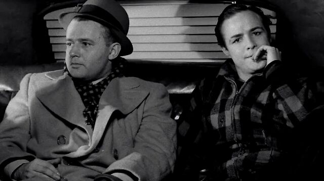 在这出戏里,两个人坐在出租车的后排座。查理正试图说服特里和伊蒂分手(伊蒂是乔伊的妹妹,他被黑帮杀死,而特里与杀人行动有关),并回归黑帮。在观影过程中,你可以感觉到这个场景的势均力敌:特里和查理,两人都没有占优势的地位。