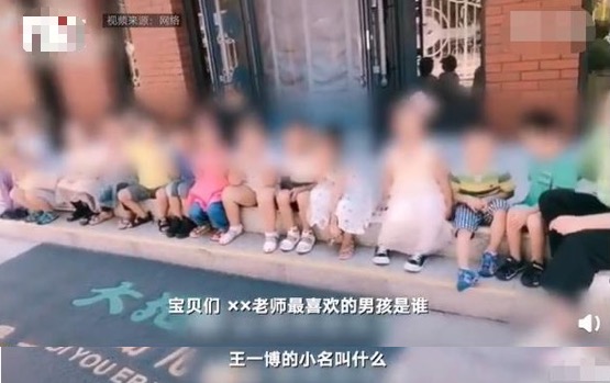 在视频中,一群小朋友整齐地坐在台阶上,正面是老师对着他们录视频,老师问这些小朋友「宝贝们,某某老师最喜欢的男孩是谁?」随后小朋友们异口同声地回答「王一博」,而且这些小朋友还说出了王一博的小名。