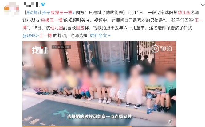 5月14日,权威媒体新京报曝光了一段辽宁沈阳某幼儿园老师让小朋友「应援王一博」的视频,再次引发网友的关注。