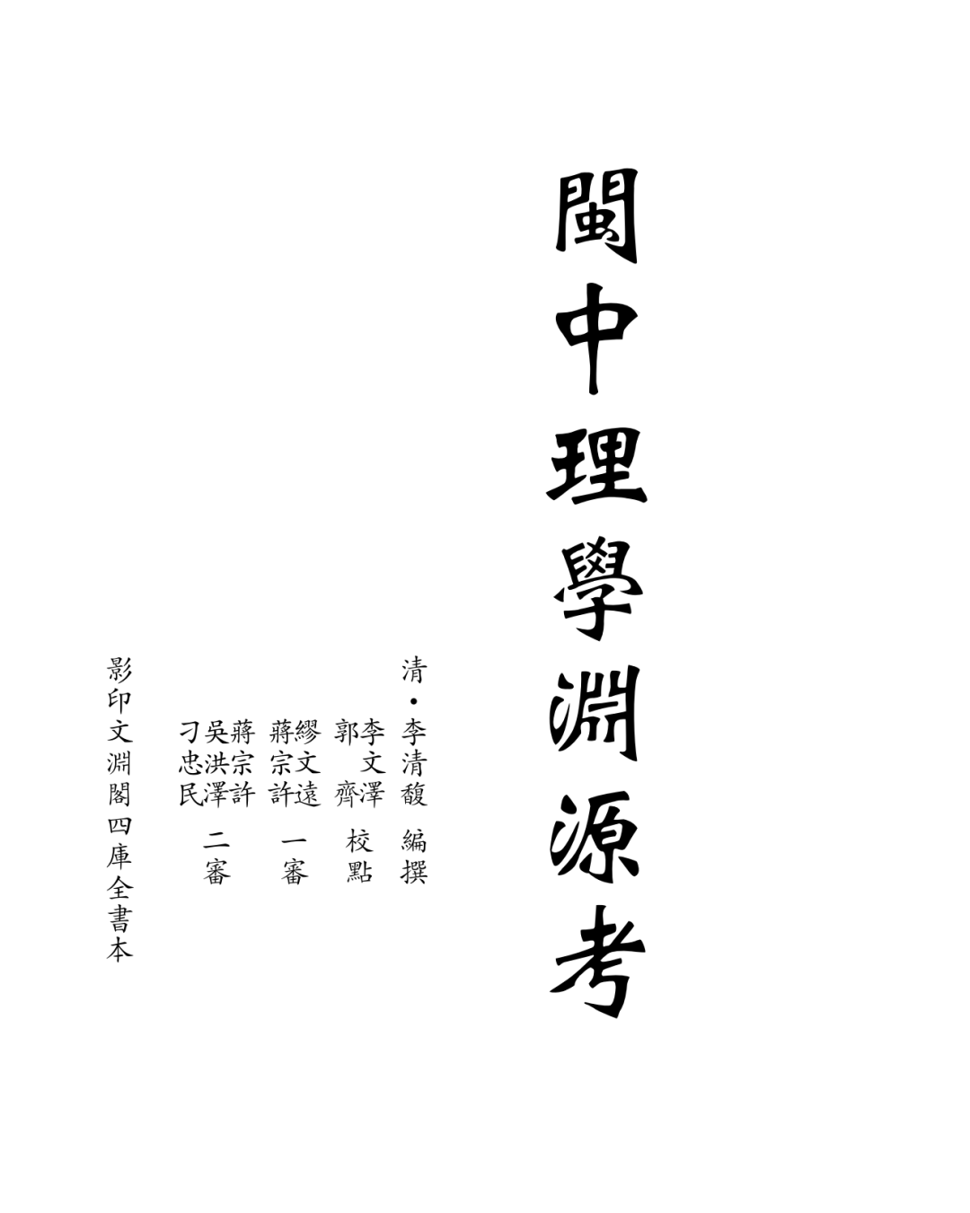 闽中儒学的发展,自北宋杨时从学于“二程”,载道而归,肇开闽南道学一派,递经罗从彦、李侗传授,延至朱熹集其大成,闽中理学蔚然成为南宋学术显宗。至元明清时代递有发展,学术昌明,名家辈出,闽中理学盛极一时。明清两代纪述闽中理学发展演变的著述,在本书之前分别有明朱衡《道南源委录》、明杨应诏《闽南道学源流》、清张伯行《道南源委》等。