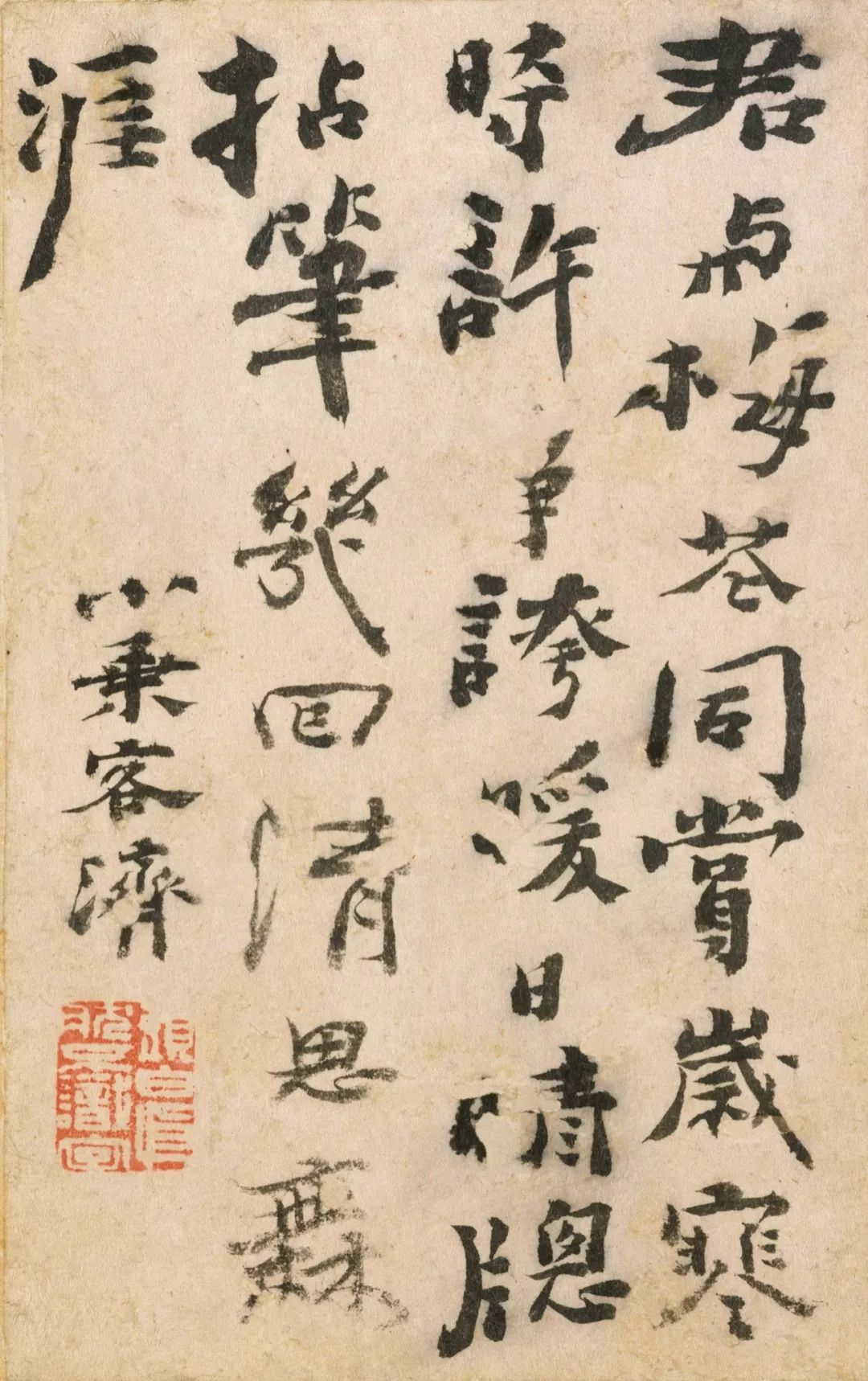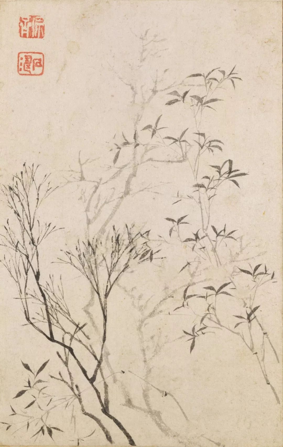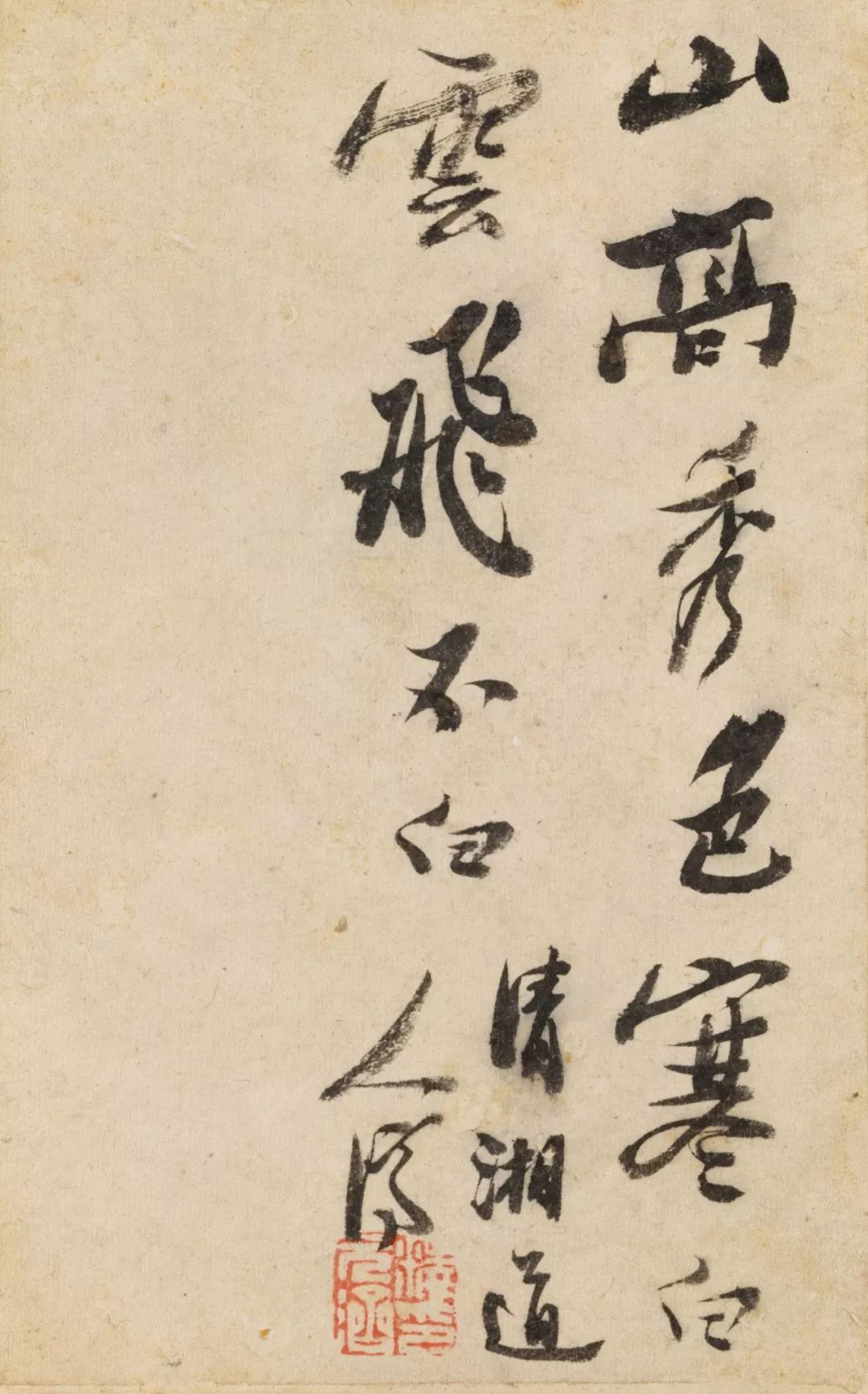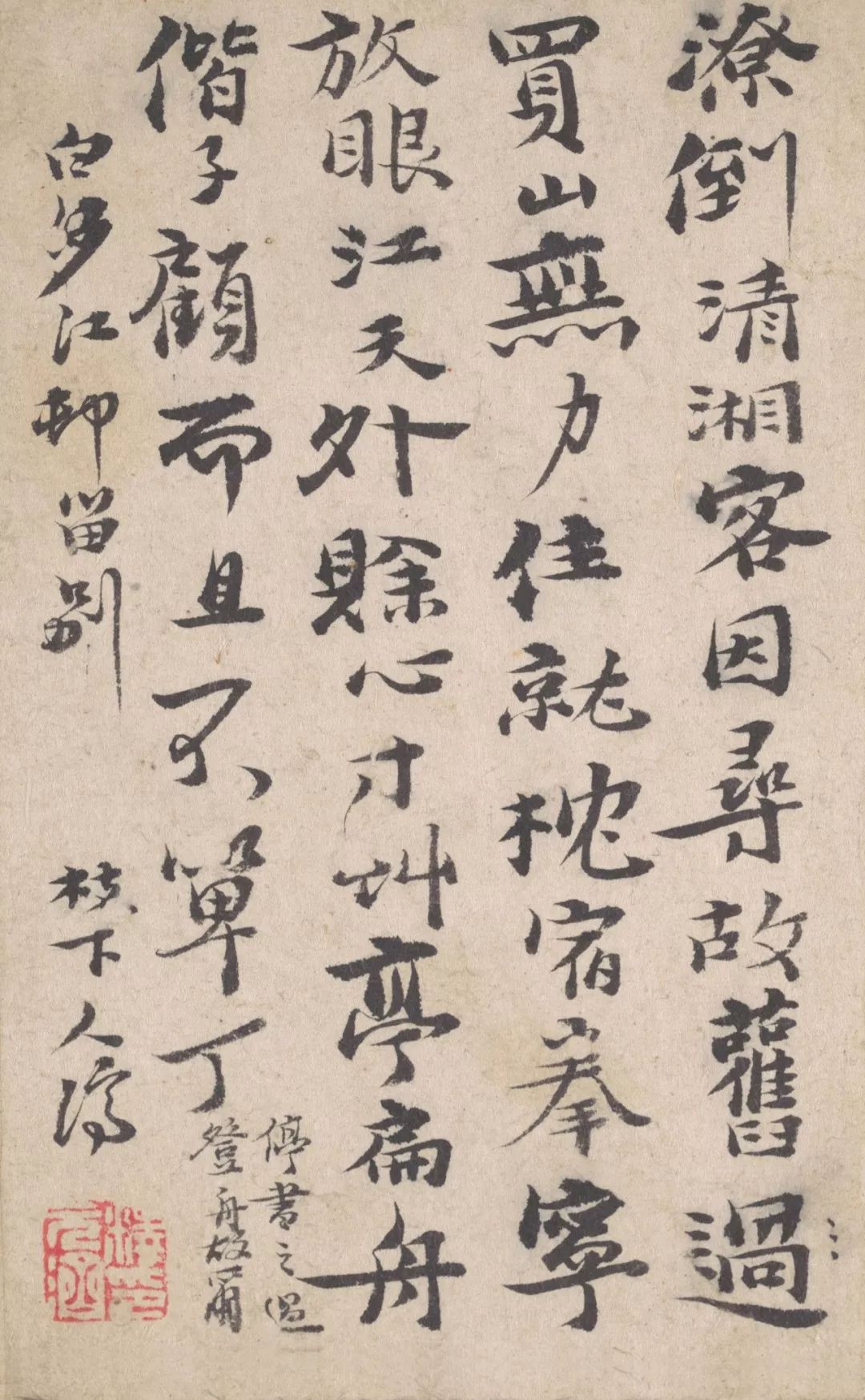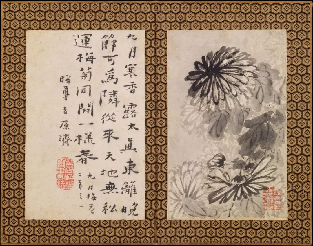 此件《归棹册页》,内含十二开,尺寸:21.1×13.5cm,美国大都会博物馆藏。每幅册页中均在画面左侧配以诗文解说,寄情于画,同时助于看画之人理解。落款:“石涛”、“石道人”、“清湘道人济”、“苦瓜老人济”、“瞎尊者济”、“瞎尊者原济”、“清湘小乘客济”、“济”、“小乘客济”等;钤印:“原济”、“石涛”、“前有龙眠济”、“苦瓜和尚”、“释元济印”等。