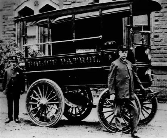 1899年在美国马车盛行的时代,俄亥俄州阿克伦城警察局第一个吃了“螃蟹”,花费2400美元买下由Collins车身公司制造的第一辆由两台4马力电动机驱动的电力车。这辆车外形很大,但时速很低,最高极速每小时才26公里,续航里程只有48公里,车辆配置极其简陋,有一个独立车头灯和专门设置的一个关押罪犯的空间。第一辆非马车的美国警车大大提升了美国出警能力,并逐渐推广装备警局。