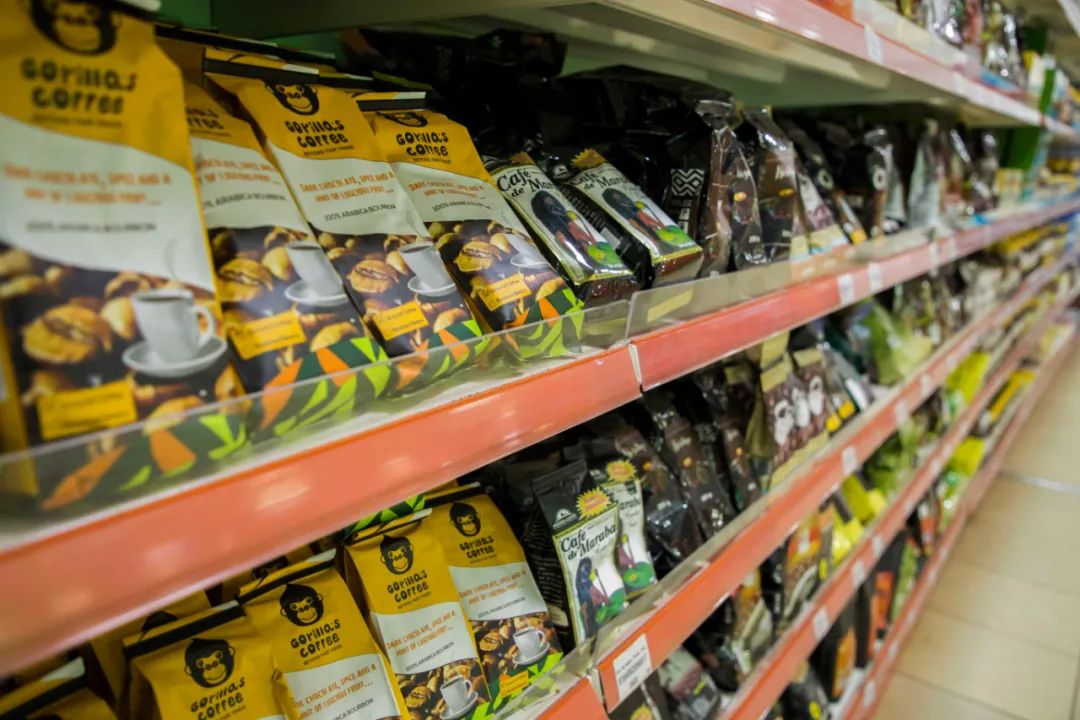 ▲5月15日,在卢旺达首都基加利,不同品牌的卢旺达咖啡摆在商店货架上出售。新华社发(西里尔·恩德格亚摄)