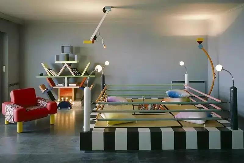 孟菲斯的诞生就是为了反对单调、冷峻的现代主义。除了类似波普风格的大胆配色,他们还特别注重运用几何元素。