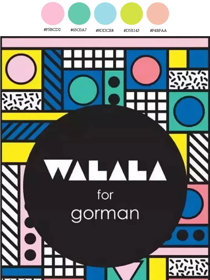 同样,高举“反叛”旗帜的孟菲斯配色,在掌握明亮和浓度的色彩秘密后,颜色想用多少用多少,想怎么用就怎么用。这,就是史上最简单配色——孟菲斯配色。