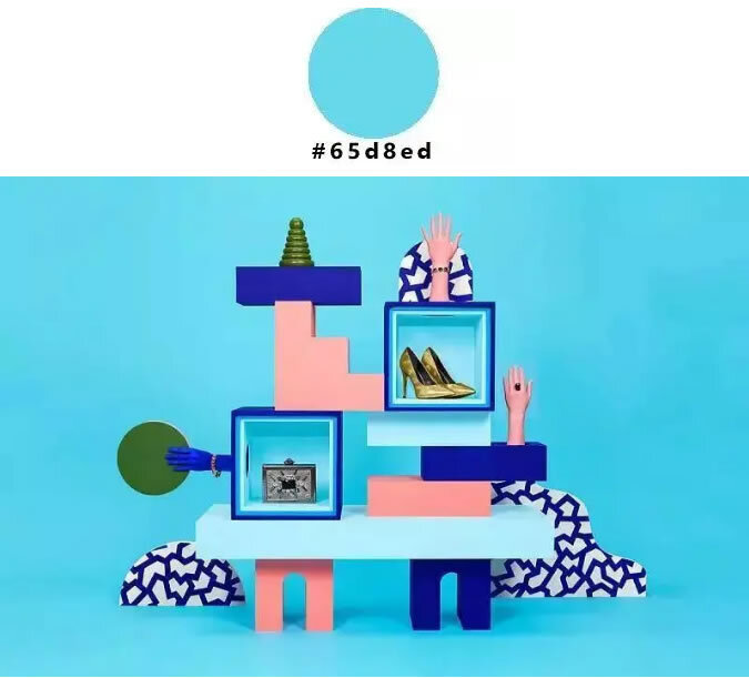 孟菲斯的单色配色不要太简单!任何鲜艳的颜色,偏点粉,都可以与孟菲斯攀上亲戚。再加上几何装饰元素,孟菲斯单色配色装置出炉啦!