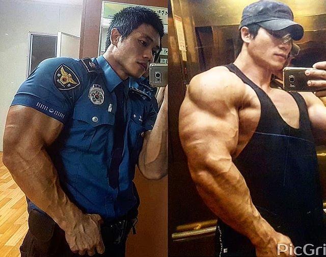 在健身圈,有很多非常热爱健身的警察,比如很多人熟知的罗尼库尔曼和Michael Counihan。这位叫Sung Yong的男子是韩国韩国最强壮警察,也是一位健美运动员,在他的要求下,其很多警察朋友也纷纷练出一身肌肉。